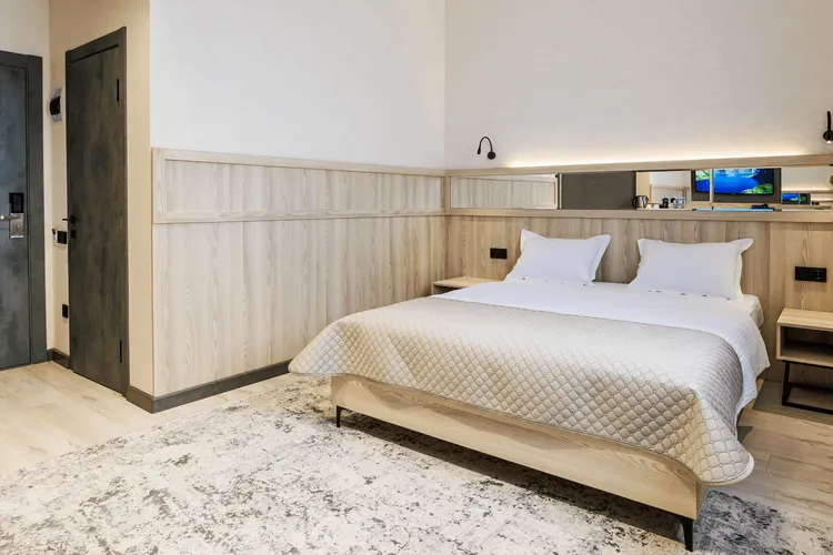 Отель предлагает своим гостям 23 номера различной категории комфортности с европейскими стандартами оснащения и сервиса. Каждый номер отеля оформлен в современном стиле. Все номера оснащены телевизорами с подключенным интернетом, кондиционером, холодильником. Душевые укомплектованы тапочками, халатами, феном и туалетно-косметическими принадлежностями.