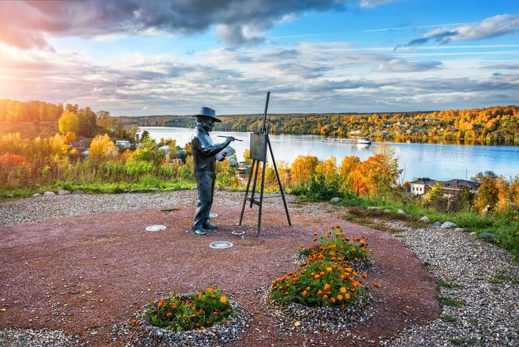 Плес – «столица» русского пейзажа, мастерская под открытым небом художника Исаака Левитана. Плес крохотный, это один из самых маленьких городков России, очень самобытный, и, без сомнения, необыкновенно душевный. Живописные холмы над широкой Волгой, покрытые кедровыми и березовыми лесами, уютно вьются дымки из труб деревянных домиков – тихо, спокойно. Вслед за Левитаном и другими живописцами, эта благодать привлекла сюда столичную богему и аристократию, которая превратила Плес в излюбленное курортное и дачное местечко Российской Империи.